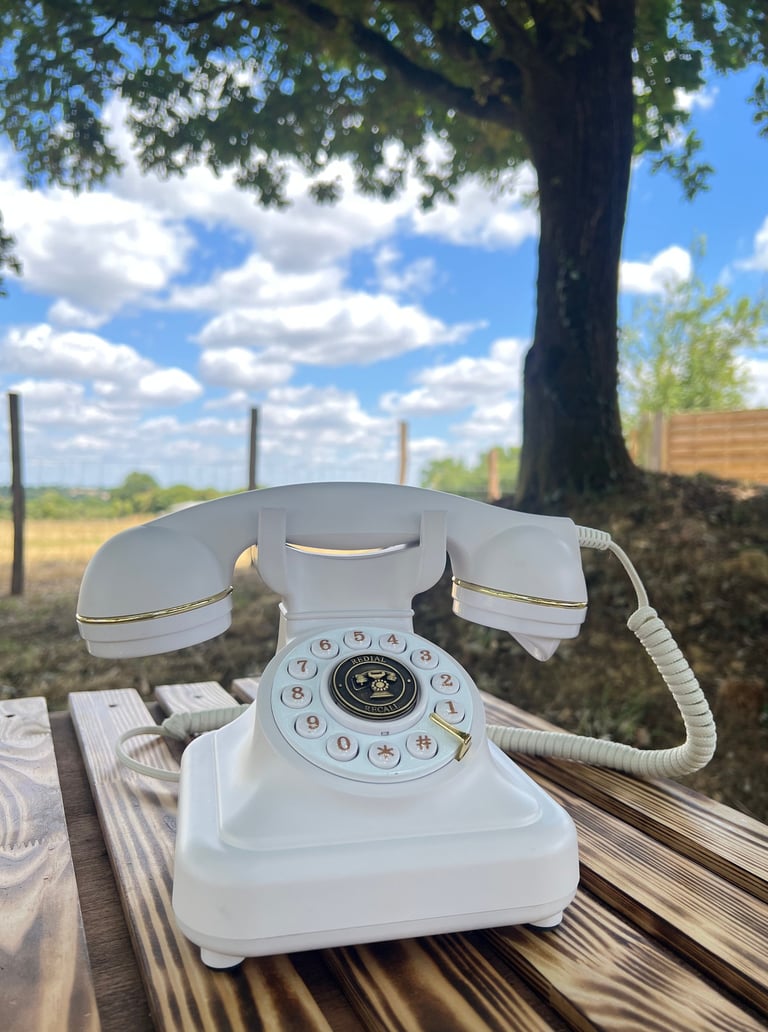En exclusivité, le téléphone vintage servant de livre d’or audio est inclus dans votre location du photobooth.